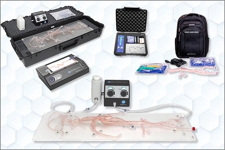 Build your complete, ready-to-use benchtop system with vessels and accessories that enhance your unique vascular requirements. Stabilizing Platforms hold models securely with a non-slip base and silicone straps, allowing controlled movement for device navigation. Flow Pumps deliver adjustable flow and pulse rates to manage fluid dynamics. Accessory Kits extend the capabilities of select models, providing added versatility. Carrying Cases and Backpacks make systems portable and easy to transport. Contact us today to configure your ideal system.